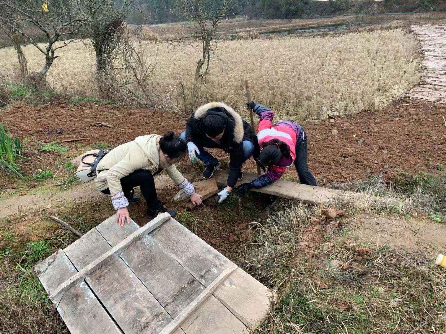 一贫困户,常年在外打工,屋外的厕所坍塌了,老师们不顾脏臭,戴上手套就与同行的同志们一起掏粪池、码砖为其修茅厕……