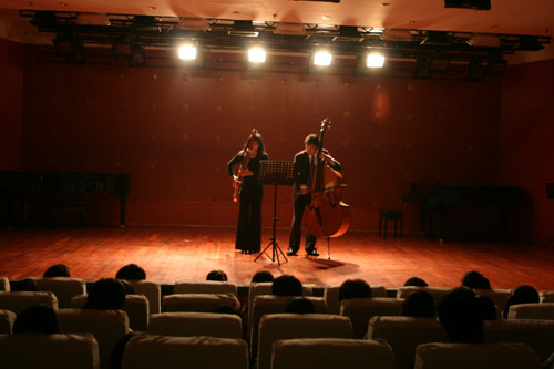 2012年12月9日至12月16日,意大利巴松管专家荣正先女士,新加坡低音提琴专家徐理先生到访我院管弦系举办大师课讲学及音乐会。