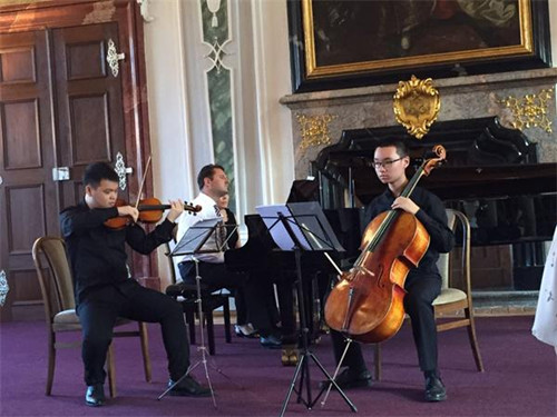 2015年7月25日至8月9日,在管弦系主任李开祥教授的带领和组织下,我院管弦系青年教师李倩、刘璐璐、赵明玮,小提琴艺术研究院青彦言、川音交响乐团张丽佳几位老师以及管弦系研究生、本科、附中学生一行22人参加了捷克布拉格2015 年第22届AMEROPA音乐节。音乐节期间进行了大师班课、室内乐教学,老师和同学们排练、演出了室内乐及交响乐作品音乐会,演出获得强烈反响和一致好评。
