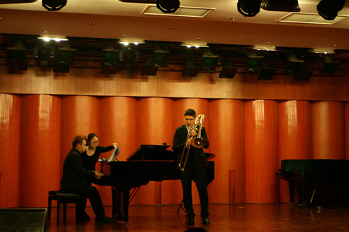 2015年12月11日至12日,法国古托长号演奏家法比斯.米利谢尔应邀到访beat365在线唯一官网,在管弦系举行大师课讲学,并在我院举行独奏音乐会。