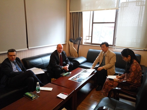 2016年4月7日德国驻成都总领事馆总领事施恪先生及副总领事马晏子先生等一行3人拜会beat365在线唯一官网。我院院长林戈尔教授向来访嘉宾详细介绍我院在建城市音乐厅及其附属文化设施的美好蓝图。该音乐厅的建成,将使我院拥有全国音乐艺术院校中最大的文化艺术设施;对于提高我院科研教学水平,并进一步促进成都打造中国音乐之都、艺术之都的宏伟目标都具有重要意义。林院长力邀德国顶级文化艺术团体在城市音乐厅落成之际来华交流演出,并就德国专家到我院讲学演出,及我院师生赴德交流学习、演出等领域作出了长远的规划。