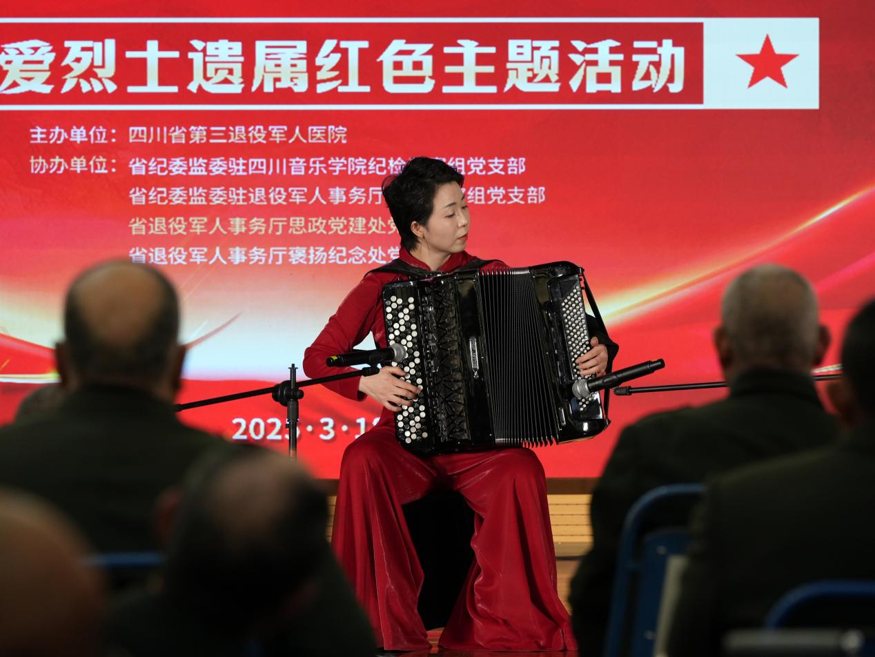 活动中,谭学胜副院长登台深情演唱,柳珊珊副教授进行手风琴独奏,二人用精彩的表演传递了对英雄烈士及其家属的敬意。