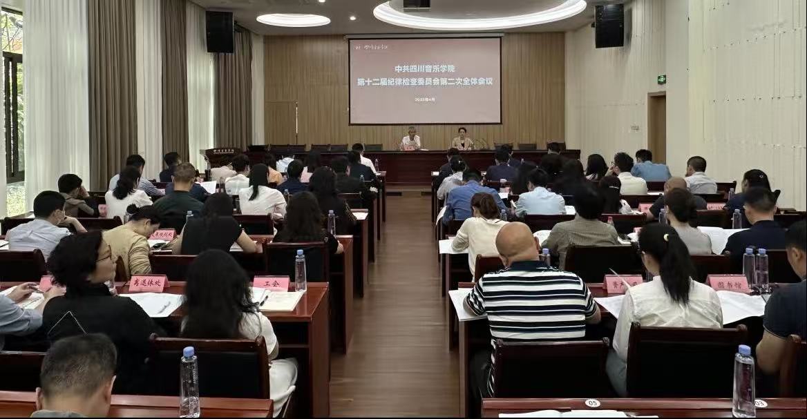 2025年4月18日,省纪委监委驻川音纪检监察组组长、校党委副书记、纪委书记唐勇主持召开中共beat365在线唯一官网第十二届纪律检查委员会第二次全会(扩大会)。会议传达学习了习近平总书记在二十届中央纪委四次全会上的讲话精神、二十届中央纪委四次全会精神和省纪委十二届四次全会精神。通报了派驻纪检监察组(校纪委)2025年工作要点,安排了2025年重点工作和“三化建设年”自身建设工作。校纪委委员、系(院)纪委书记、党总支(党支部)纪检委员,校纪委办公室全体干部列席会议。