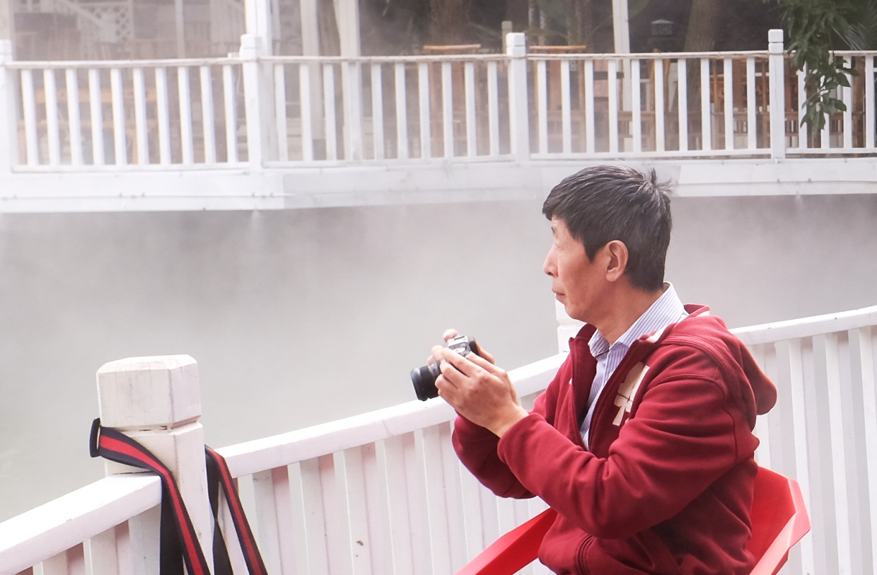 教学二支部委员刘昌华为几位老同志拍照,留下大家灿烂的笑容