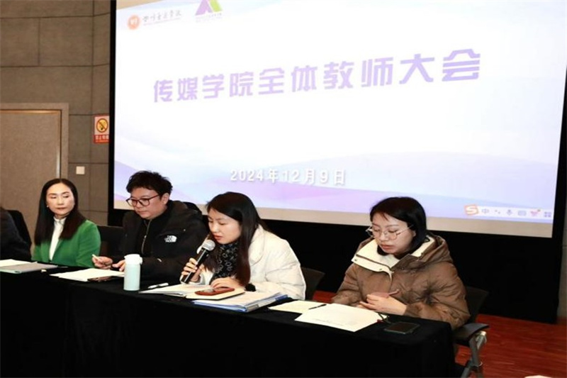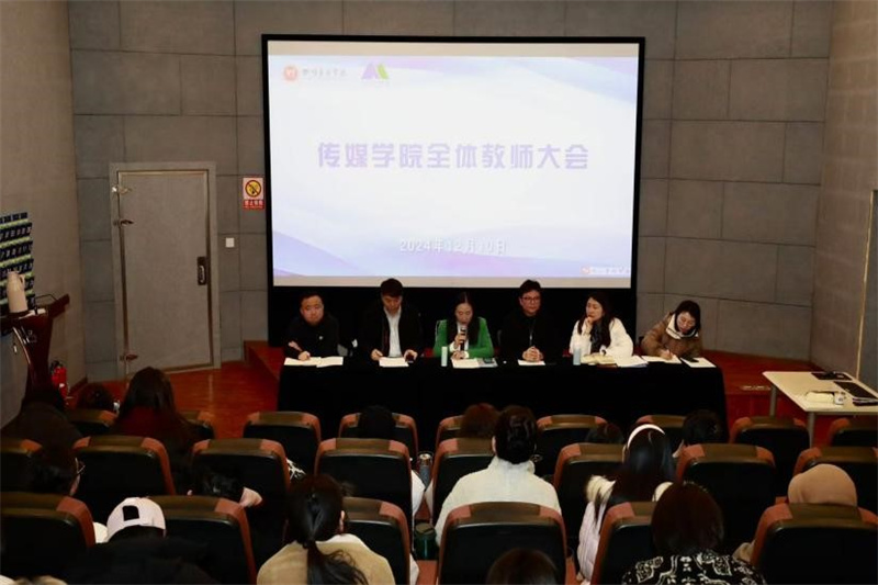 为了做好新一轮本科教育教学审核评估工作,不断强化教风学风建设,2024年12月10日下午,传媒学院在四教102召开了全体教师大会。传媒学院党委书记刘道莉、副书记陈思、副院长刘莉、王利剑、院长助理徐江、董攀以及全体教师参加了本次大会。