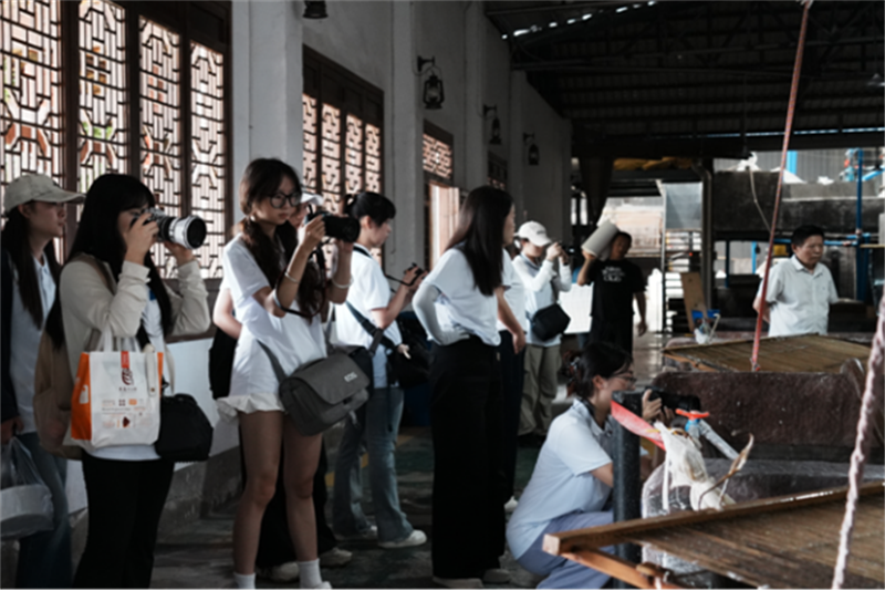 7月6日,团队聚焦国家级非遗“夹江竹纸制作技艺”,实地探访大千纸故里与杨湾纸坊。在大千纸故里,成员们深入了解了72道古法造纸工序的精妙,亲见匠人手工操作。在杨湾纸坊,成员们不仅感受到传统技艺的坚守,更了解到其积极拥抱电商直播等新业态,实现可持续发展,让“千年纸乡”焕发新生机。团队成员用镜头记录下匠人精神和纸艺之美。