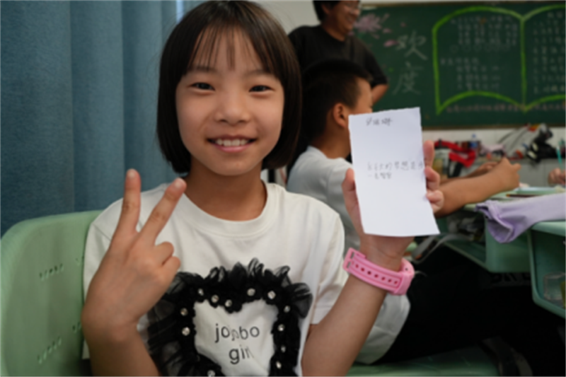 钟语馨同学的电影鉴赏课以《我和我的祖国》“北京你好”篇切入。影片片段中,出租车司机将奥运门票让给汶川男孩的画面,牵动着孩子们的目光。“平凡人也能书写英雄故事。”钟语馨围绕“平凡人物的爱国情”展开分析,从司机的市井幽默讲到其藏于调侃里的家国心,引导孩子们理解普通人与时代同频的力量。讨论中,有同学感悟:“原来爱国不一定要做大事。”课程尾声,孩子们提笔写下“中国梦”:“想当兵保家卫国”“要造能抗震的房子”。光影流转间,个体梦想与时代脉搏悄然共振,这堂电影课以镜头为窗,让“时代同频之魂”在年轻心中扎根。