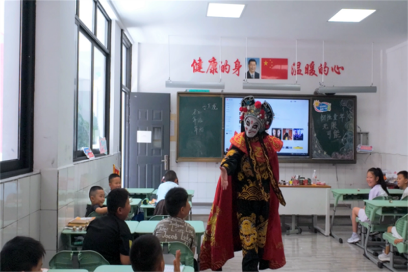 李玉龙同学在冷碛小学带来首堂别开生面的川剧变脸课。他不仅现场演绎变脸绝技——一抹、一揉、一转身间,脸谱变幻莫测,引得孩子们阵阵惊呼;更生动讲述了川剧变脸的百年发展:从古代民间艺术雏形,到融入川剧的独特技艺,再到成为国家级非遗的传承之路。“原来一张脸能藏这么多故事!”孩子们在互动中感受非遗魅力,纷纷表示要做传统文化的“小传承人”。古老技艺走进少年心田,为非遗传承注入青春活力。