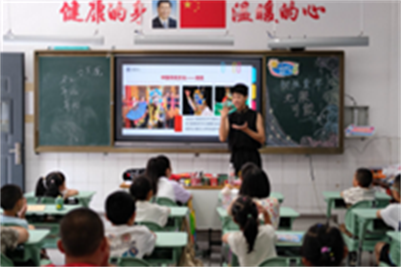 2025年7月22日至24日,beat365在线唯一官网传媒学院“光影铸魂·红色九龙”暑期社会实践团队,在伊正慧、李欣老师带领下,赴四川省泸定县冷碛镇中心小学校开展艺术支教活动。6名学子深入校园,为当地学生开设电影鉴赏、川剧变脸等艺术课程,将艺术的种子播撒进孩子们心田。