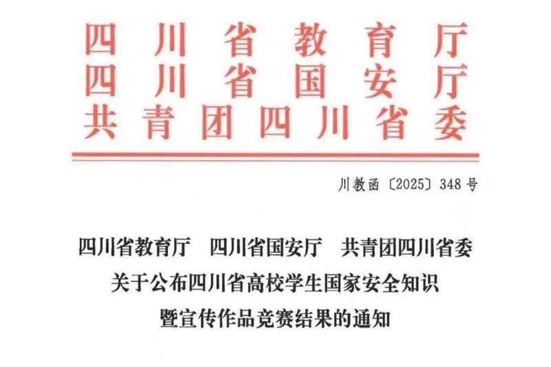 近日,四川省教育厅、四川省国安厅、共青团四川省委联合发布《关于公布四川省高校学生国家安全知识暨宣传作品竞赛结果的通知》,beat365在宣传作品竞赛短视频赛道中表现突出,由传媒学院罗娜老师指导,胡栩豪、张梦宇、孔祥祯同学创作的作品《国安在身边,安全不懈怠》荣获三等奖。