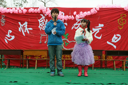 beat365在线唯一官网传播艺术系携新都区高宁小学“感恩的心”元旦联欢会暨四川省教育厅“铭记5•12”合唱会于2008年12月29日14:00在新都区高宁小学举行。在这次活动中,大学生和小朋友同台演出,共庆元旦佳节。在汶川大地震半年之后,我系学生以一种特殊的方式为受灾的小朋友们送去关心和祝福,真心希望他们能在新年来临之际,以崭新的姿态迎接美好的生活。此次活动也是传播艺术系学生在校外开展的一次颇具意义的实践活动,它充分展现了我系大学生积极、乐观、向上的精神面貌。
