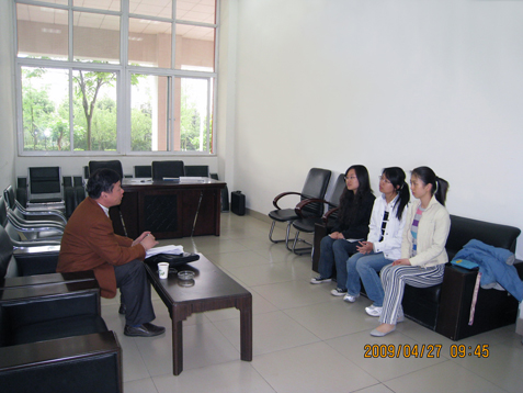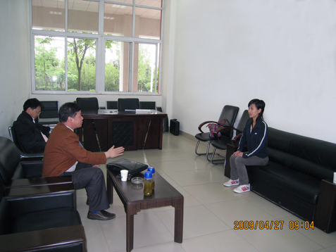 2009年4月27日上午8:30~10:30,在四教114室,江苏省金坛市电视台到我系招聘播音员和新闻记者。这也是本学期我系举办的第三次现场招聘会。 金坛电视台的人事科长和新闻部主任与学生亲切交谈的同时也对学生进行了基本的专业测试和现场录音、录像等,最终结果将在近期通知学生。