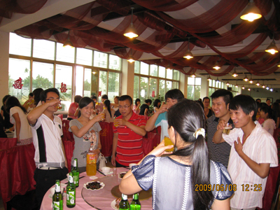 2009届学生毕业离校已经进入倒计时,为了庆祝即将毕业、为了四年的付出和努力、为了曾经的不懂事……。2009年6月8日中午,传播艺术系2005级学生在新都一家饭店欢聚一堂,感慨万千话毕业。 孙岳代表2005级学生发表毕业感言。在热烈的掌声中,系主任王江、向书记分别发表了热情洋溢的讲话,并祝愿大家通过自己的努力,都有一份好工作,都有一个美好的明天。 最后,大家为明天举杯。
