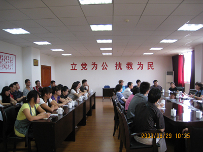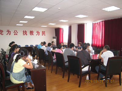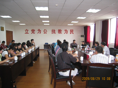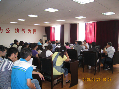 2009年8月29日上午9:50分在新校区317会议室,我系召开了新学期教学研讨会。任课教师、教学管理人员、辅导员以及行政人员共计38人出席了此次会议。