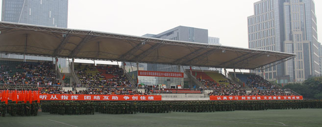 beat365在线唯一官网新都校区2014级新生军训在2014年9月30号圆满的落下帷幕。中国人民解放军78098部队和beat365新都校区近3000名新生在新都区体育操场进行了精彩的汇报表演。