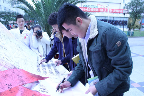 12月1日是世界艾滋病防治日,为普及预防艾滋病知识,提高师生主动预防艾滋病、正确认知与对待艾滋病患者的意识,我系与成都医学院公共卫生系的师生们联合开展了主题为“防治艾滋病·加强性教育”的科学卫生系列活动,包括签名、联谊与专题讲座等形式,起到了“关注防艾、科学对待、远离疾病、从我做起”的良好宣传与知识普及作用。我系党总支副书记后方、辅导员张旭与我系部分学生、成都医学院部分师生共同参与了相关活动。 其中,专题讲座由成都医学院公共卫生系朱彦峰老师主讲。朱老师先从艾滋病的历史开始介绍,一路讲义到艾滋病的现在时情况,并通过数据让在场师生初步认识到我国艾滋病的流行区域及演变和防控趋势,紧接着朱老师对“什么是艾滋病毒(HIV)”进行了详细介绍,继而深入讲到艾滋病毒对个人、家庭和社会的危害和影响,并详细介绍了感染艾滋病的三大传播途径以及向师生们普及了如何才能有效防止和阻断被感染的途径和措施。 朱老师还现场邀请了25名志愿者进行了如“交换糖果”等既生动活泼,又寓教于乐的互动活动,形象解说了艾滋病的传播过程和预防方法。 本场专题讲座使在场师生在“世界艾滋病防治日”这样一个特殊的日子里更系统更直观的了解到了有关艾滋病的更多的基本常识,很好起到了提升“科学防艾”与“理性性健康”意识的积极作用,得到师生好评。