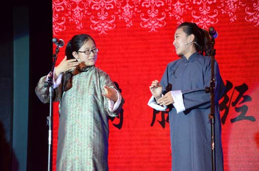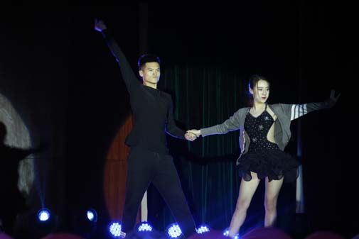 晚会语言节目——相声《满腹经纶》的出现将现场的气氛推向了一个高潮,办公室两位同学精彩绝伦的嘴上功夫,在加上丰富的表情和惟妙惟肖的肢体动作,让原本就层出不穷的包袱抖得更加响亮,得到了雷鸣般的掌声。带着梦想,充满正能量的原创歌曲、热辣的拉丁舞、吉他和声弹唱等一系列的组合演出,不断地擦亮在场每一个人的眼球,不由自主的欢呼叫好,气氛热烈。随后,开明、音浪、手段三个学生工作室的专业微视频片段展示用成熟凝练的作品沉淀了晚会以及传媒学院学生的专业高度。同时,抽奖互动也让在场的同学积极活跃起来。传声学生工作室的《抗战家书》也再次回扣了向“五四”致敬的主题,而生活部的舞蹈《Lion Heart》则展现了新一代传媒学子的青春活力、可爱俏皮。外联部的话剧《南京,南京》,生活部的魔术《梦》也在最后一步一步的将晚会推向最终的高潮。