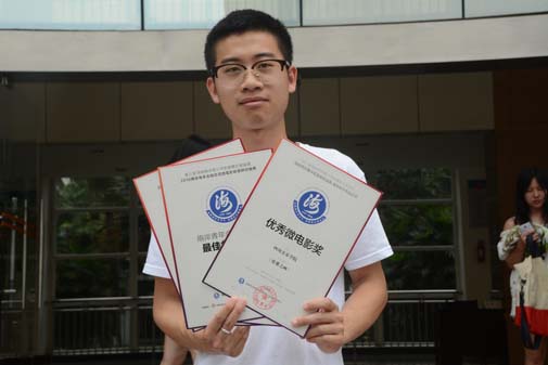 王循坤、杨经文、高青三人分别获得了“优秀微记录片”《衍戏》,“优秀微电影奖”《皮囊之画》,“优秀作品奖”《游抑》,以及“最佳创意团队”、“优秀创意团队”总共六项奖励证书。
