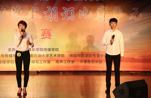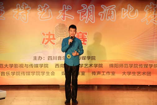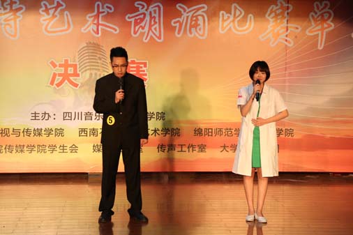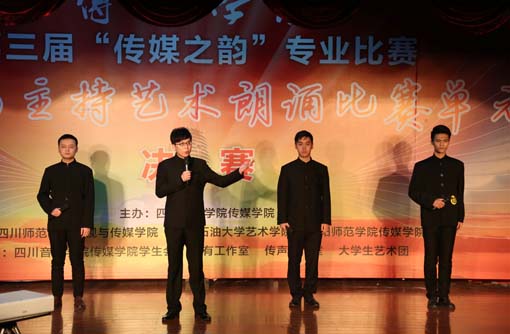 为助力提高我院播音与主持艺术专业学生专业综合能力,开拓专业眼界、收获有益经验,激发更高更广泛的专业学习热情,营造浓厚专业学习氛围。我院于2016年12月13日在新都校区4教104成功举办了第三届“传媒之韵”专业比赛播音与主持艺术朗诵比赛单元决赛,为喜爱朗诵的同学搭建了展示自我的平台。同时,本次比赛还在映客APP上进行同步了直播,将每一位参赛选手的风采充分准确的展示给更多热爱声音的人观摩、指正。