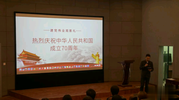 2019年9月16日下午4:50传媒学院党总支在4教102开展观看红色影片《建党伟业》的观影活动。传媒学院党总支副书记后方投资同志、分团委书记游月老师、记者团成员以及学生会主要干部和部分部员参加了此次活动。        活动开始,全体起立,齐唱国歌。铿锵有力的进行曲节拍鼓舞着在场每一位师生的心。紧接着,后方书记分别讲述了国歌、国旗和国徽的来历以及背后的故事。最后,游月书记组织观看影片《建党伟业》。   影片中那段充满理想主义和家国情怀的岁月并未因时间的洗涤而泯灭在历史的长河中,反而伴随着时间的打磨而熠熠生辉,催人奋进。无数的先烈燃烧自己,以生命为代价探寻着中国未来的道路。 整个观影过程安静肃穆,每个人都怀揣对先烈的缅怀,认真地观摩影片。此次活动让同学们重温建党那段峥嵘的历史,为如今祖国繁盛的局面由衷的自豪!