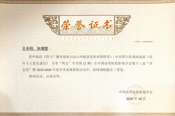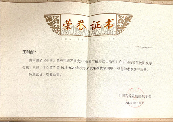 2020年10月29日-11月1日,中国高校影视学会第二十届年会暨第十三届中国影视高层论坛在位于大邑县安仁古镇的四川电影电视学院举行。我院党总支书记、院长包德述教授带领我院师生共10人前往参会,与来自全国超过200所高校、近500位专家学者围绕着“新文科与新技术:中国影视教育的机遇与前景”主题进行了广泛而深入的交流与探讨。 在此次活动中,我院传媒理论教研室主任刘莉副教授在“第九届传媒艺术论坛”中发表了题为《好莱坞科幻电影技术叙事中的时间观及其呈现》的学术报告。伊正慧老师在“影视史学研究专题论坛”中发表了题目《身份的尴尬与批评的断裂:八十年代中国电影批评视域下的香港武侠电影》的学术报告。 2019级硕士研究生刘雨蝶在“影视理论研究新生代论坛”中,发表了题为《嘻哈音乐选秀节目<中国新说唱>的“弱传播”策略与思考》的学术报告,受到了大家的普遍好评。 同时,在年会同期举办的中国高校影视学会2019-2020年学术成果评选中,我院副院长王利剑教授的《中国儿童电视剧发展史》荣获学术专著三等奖,王永刚老师、张靖雯老师的《四川广播电视助力凉山州脱贫攻坚对策研究》荣获调研报告三等奖,彰显了我院较强的科研实力。 在本届年会上,国家广播电视总局总工程师王效杰,中国传媒大学副校长张树庭教授,四川省教育厅一级巡视员胡卫锋,四川省广播电视局副局长彭佳,中国高校影视学会会长胡智锋教授,副会长欧阳宏生教授、周星教授、尹鸿教授、罗共和教授、姚争教授等业界、学界大咖等均做了精彩发言,探讨了新文科背景下影视学科发展的诸多问题,我院参会师生认真学习,收获颇丰。