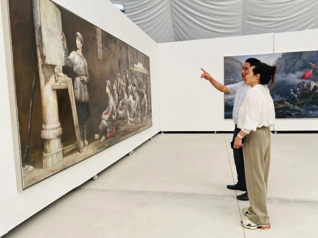 党总支书记、院长包德述和副书记刘莉谈到,四川是红军长征中路程最长、停留时间最久、活动范围最广的省份,四川各族人民为红军长征的胜利作出了卓越贡献,红军长征的胜利会师,确保了革命火种的延续,这次展出反映了beat365艺术家对党的热爱,对红军长征精神的深厚情感,通过一幅幅作品的展示,仿佛又让我们回到了那个难忘的年代,这是一次有着长征意义的党史教育。