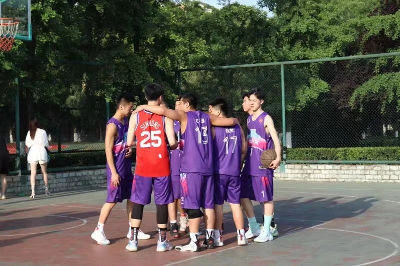 接下来是更为激烈的男子组篮球比赛,比赛开始前球员们便聚在一起呼喊口号为彼此加油打气,展示出了激情与活力。
