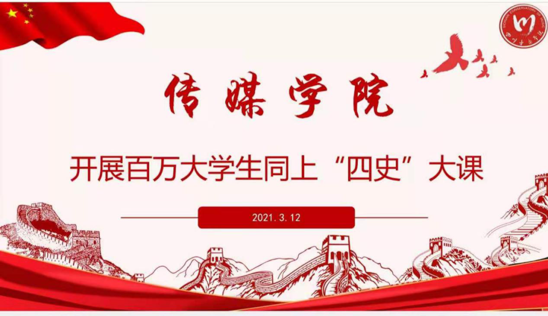 本次学院组织收看“开学第一课”暨“四川百万大学生同上‘四史’大课是为深入贯彻落实习近平总书记在中央党史学习教育动员大会上的重要讲话精神、遵照中央和省委关于党史学习教育的决策部署,推动以党史为重点的“四史”学习教育在本校取得实效。本次活动我院按照全省教育系统党史学习教育实施方案要求和省委教育工委精神进行“四史”学习活动的开展。