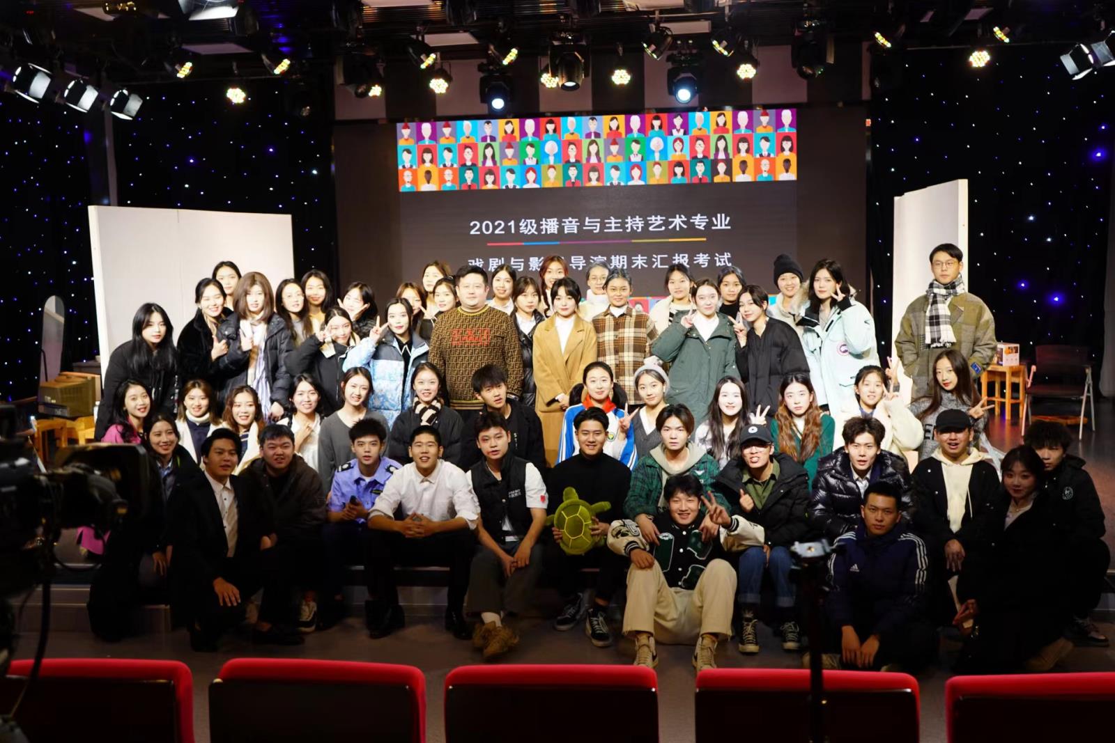 还记得我们可以在开会时因为剧本的瑕疵、意见大吵一架,最后相互妥协。我们有一颗上进的心,每个人都是自己心中的第一名,每个人都是主角。每个人都在为了未来而努力,我们希望能够破茧成蝶,希望能够站在舞台上完成我们的这次演出。我们2021级播音班诚邀各位莅临现场,谢谢大家!