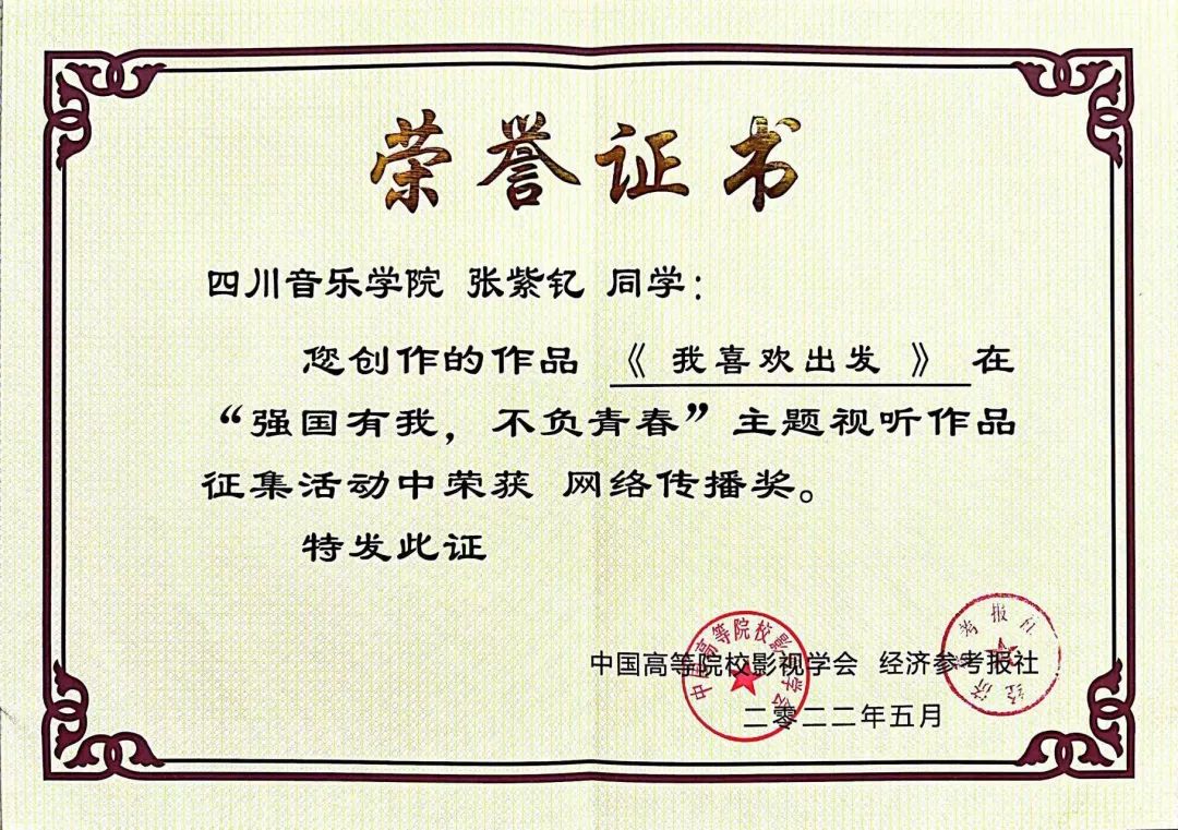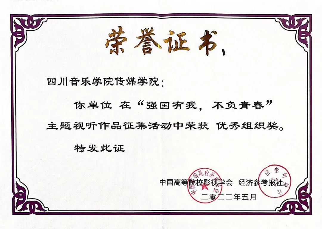 近期,由中国高等院校影视学会网络视听专业委员会与经济参考报社联合主办的“强国有我、不负青春”主题视听作品征集活动获奖名单揭晓,传媒学院2021级播音与主持艺术专业学生张紫钇创作的诵读作品《我喜欢出发》荣获本次征集活动网络传播奖,beat365在线唯一官网传媒学院荣获“优秀组织奖”。
