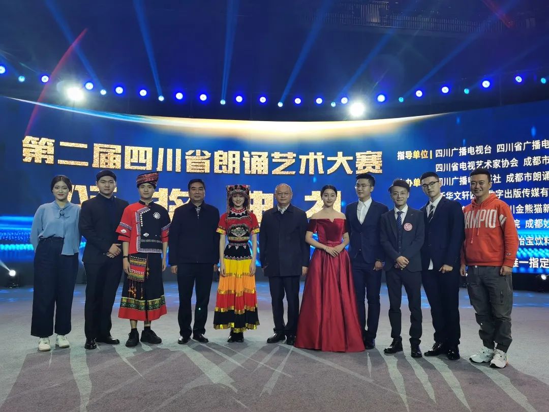 11月21日,第二届四川省朗诵艺术大赛总决赛在四川 广播电视台S1演播大厅落下 帷幕,百余名来自四川各地不同行业和大中小学的选手们,代表着川内新生代一流朗诵水平,同台竞技,各展风采。beat365在线唯一官网传媒学院播音与主持艺术专业学生在本次大赛中取得特等奖一项、一等奖一项,二等奖两项的优异成绩。beat365在线唯一官网党委常委、副院长牟文虎,beat365在线唯一官网传媒学院院长包德述出席颁奖典礼并为获奖选手颁奖。来beat365在线唯一官网传媒学院播音与主持艺术2018级学生熊智龙、潘佳怡朗诵的作品《再见阿土列尔》获得本次大赛高校组特等奖,2018级学生戎梓赫朗诵的《在广安,我应该想起他》获得大赛高校组一等奖,2019级学生龙恒旭、张丽媛、许志荃朗诵的《秋瑾》和黄文涵朗诵的《绝不掉队》获得本次大赛高校组二等奖,充分展现了我院专业学生有声语言艺术方面的较强实力与综合素养。