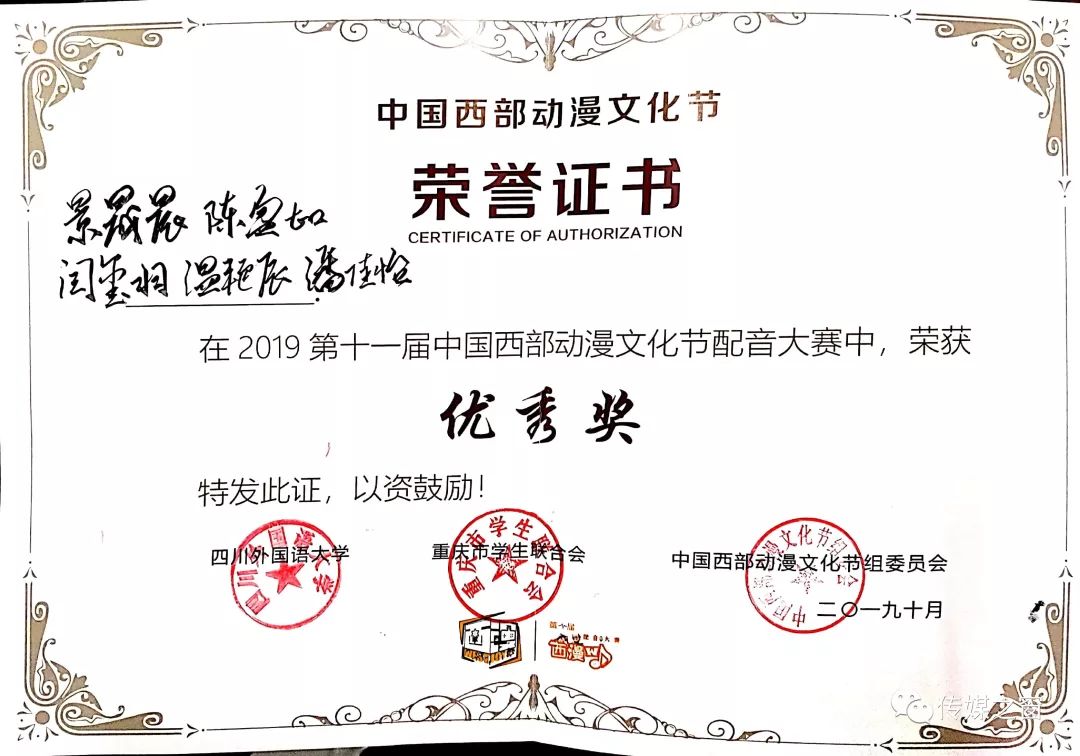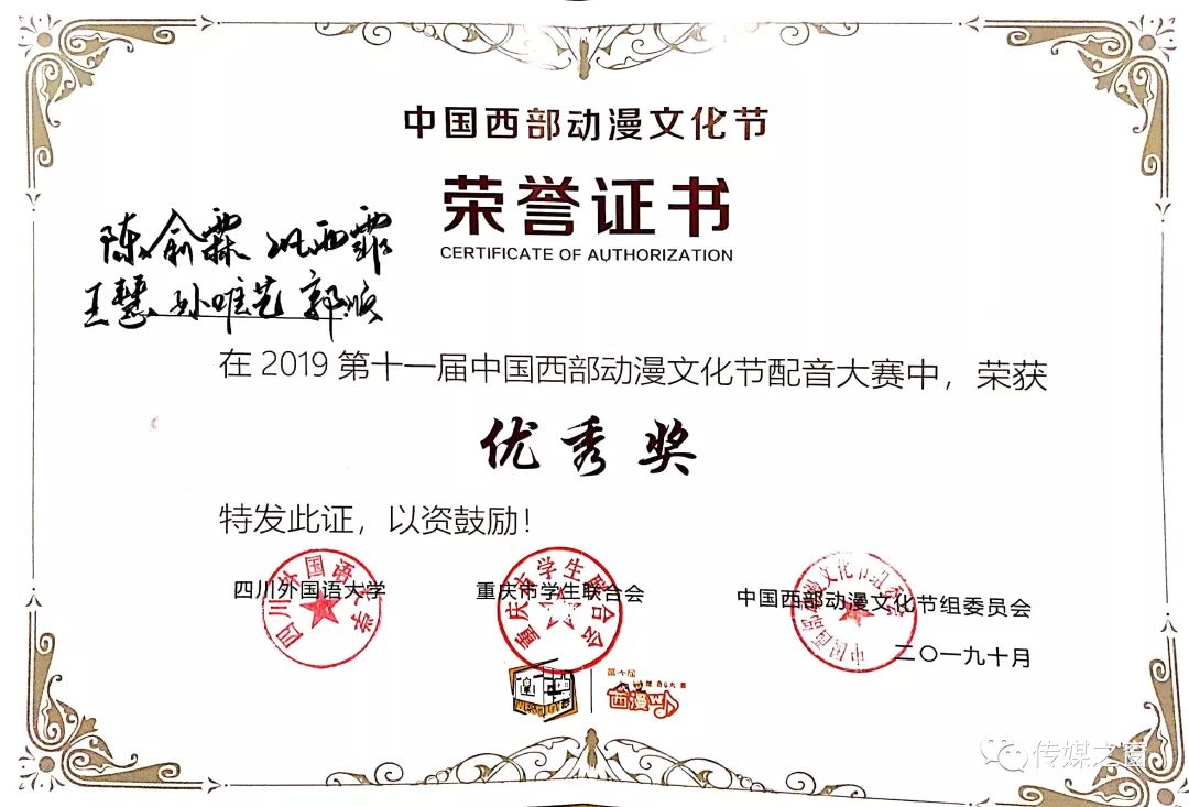传媒学院在第十一届中国西部动漫文化节配音大赛中喜获佳绩