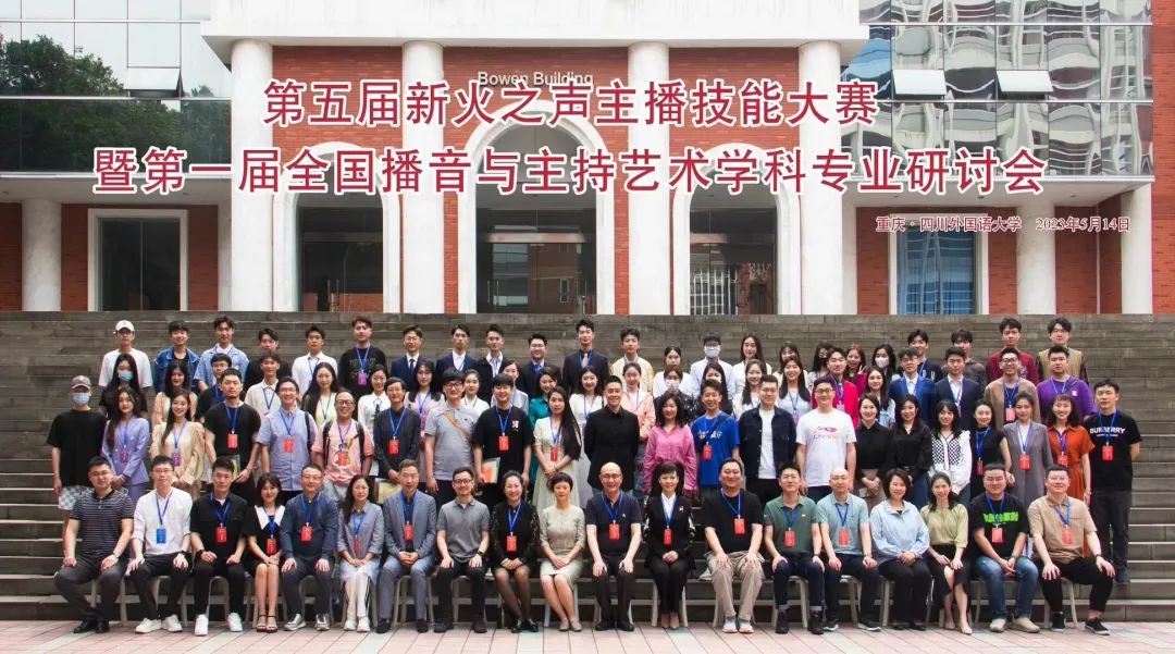 5月14日,第五届新火之声主播技能大赛暨第一届播音与主持艺术学科专业研讨会在四川外国语大学东区宏文楼国际报告厅举行。本次播音与主持艺术学科专业研讨会由四川外国语大学、重庆市电视艺术家协会、AsiaFM亚洲音乐台联合主办。中央戏剧学院影视系教授刘云丹,重庆大学美视电影学院副院长马欣,安徽艺术学院传媒学院党总支书记、院长蔡正兰,重庆对外经贸学院影视融媒体学院副院长张琦,四川外国语大学新传学院党总支书记郭健出席会议,副院长丁钟主持会议。