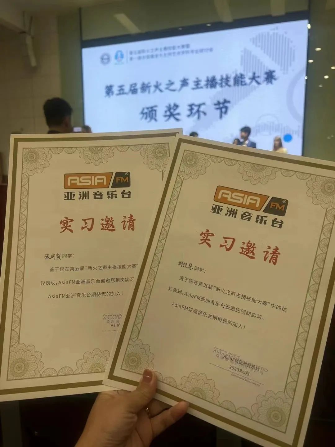 比赛由“乐动之声、搭档主持、声临其境”三个环节构成。最终经过激烈的角逐,来自我院的传媒学子刘轩含、廖思一获得本次大赛全国总冠军,刘佳慧、张同贺获得本次大赛三等奖以及AsiaFM亚洲音乐台实习邀请。