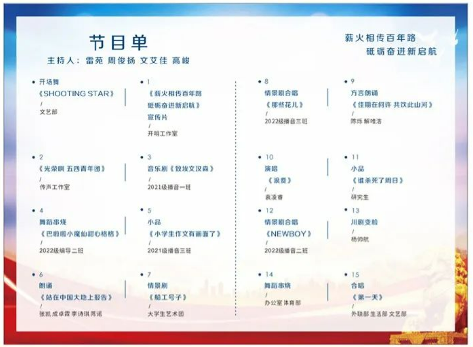 百年路砥砺奋进,新时代新使命。2023年5月25日18:00新都校区小音乐厅我们不见不散!
