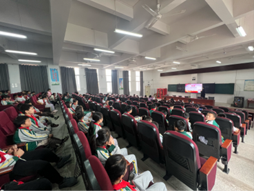 参加本次活动的有来自长宁县花滩学区优质发展共同体五所学校的学校领导、200 余位师生代表以及我院“语同音 民同心“青年与祖国发展同频共振讲习团实践组成员 2021 级播音与主持艺术专业梁馨怡同学、姜苏窈同学、李恩赐同学。