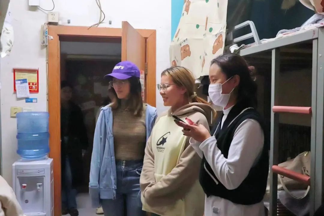 在走访过程中,学生党员代表以饱满的热情与同学们进行交流,积极宣传党的二十大报告中关于青年工作的新要求,并激励同学们要找准人生航向,坚定听党话、跟党走的理想信念。她们逐一了解同学们的思想、学习、生活等各方面的情况以及存在的问题,并结合各自在校学习和成长经历,分享了自己的经验。与同学门交流其乐融融,宿舍内充满欢声笑语,活动氛围轻松融洽。