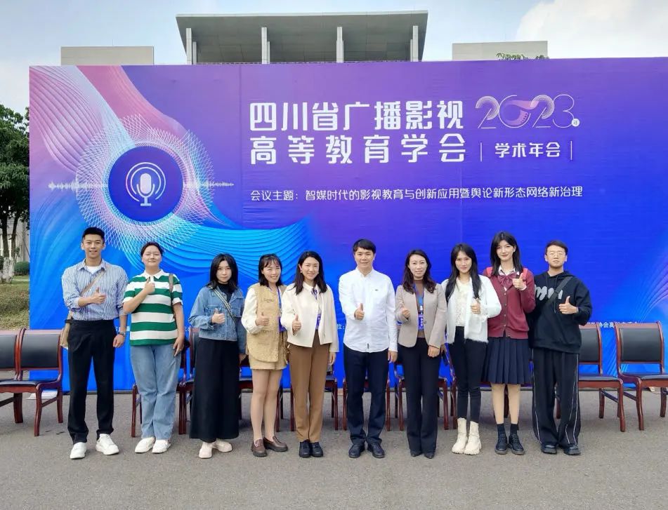 2023年11月4日,四川省广播影视高等教育学会学术年会在四川警察学院成都校区举行,来自全省各高校的领导及师生汇聚一堂,就“智媒时代的影视教育与创新应用”等话题展开了深入交流。传媒学院副院长王利剑教授、副院长刘莉副教授,院长助理、影视摄影与制作教研室主任徐江副教授,广播电视编导专业教研室主任杨一副教授及2023级艺术传播学研究生董山南、霍达、鞠琦民、钱心彤、孙泽慧、任卿云等同学共同前往参会。