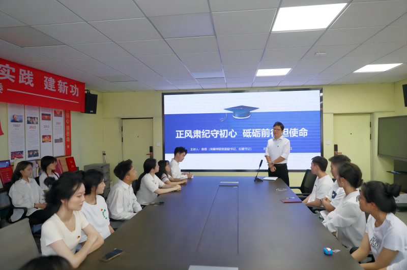 2024年6月19日,传媒学院党委副书记、纪委书记陈思为我院2024届毕业生党员上最后一次党课。本次党课从明确初心与使命、岗位奉献与奋斗、坚守纪律和信念、不忘初心和奋斗四个部分切入,对全体毕业生党员展开党性教育。