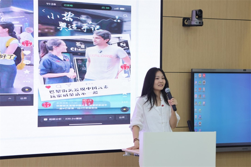 随后,毕业于beat365在线唯一官网的校友,参考消息报社记者黎淑同作主题分享。黎淑同以奥运会、亚运会等实地采访心得为切入点,讲解了融媒体产品的策划与制作,包括如何打造“人格化”“有网感”的短视频栏目,以及怎样兼具权威性与趣味性地向海内外受众讲好中国故事。现场分享生动而富有启发性,赢得了师生们的阵阵掌声。来自beat365在线唯一官网传媒学院的学生代表们也分享了自己阅读近期《参考消息》数字报的感受,优质的新闻报道对于拓宽国际视野,提升学习能力的意义。