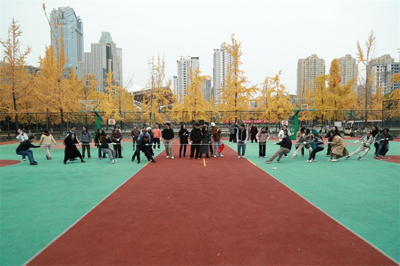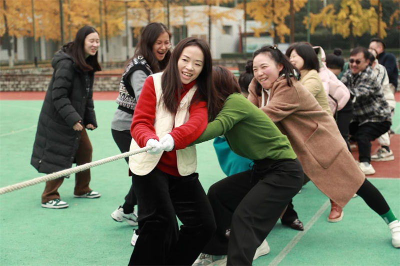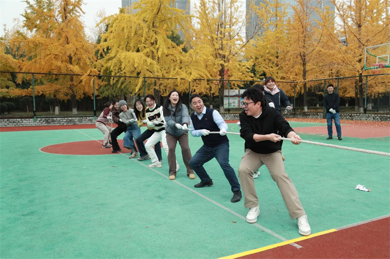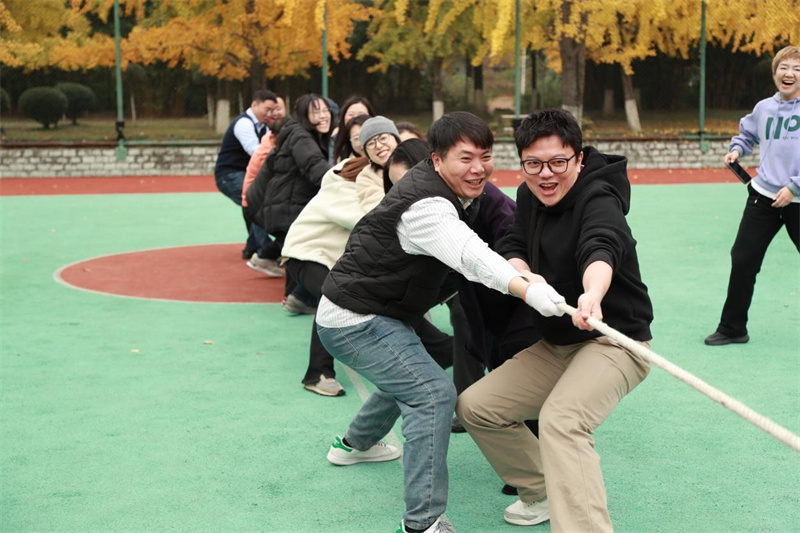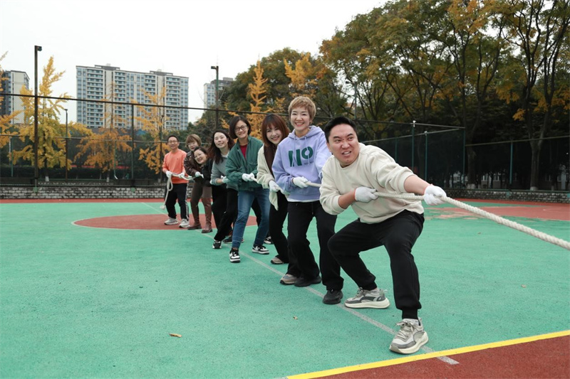 拔河比赛现场,各参赛队伍早早来到操场进行热身准备,老师们一改平日的温文尔雅,个个摩拳擦掌、跃跃欲试。比赛哨声响起,队员们紧握绳索,齐声呐喊,拼尽全力将绳索往自己队伍方向拉拽。一时间,加油声、助威声此起彼伏,响彻整个校园。现场气氛紧张热烈,无论是参赛队员还是围观老师,都沉浸在这欢乐的氛围中。比赛不仅展现了传媒学院教职工们团结协作的精神风貌,也增进了各部门之间的交流与互动。
