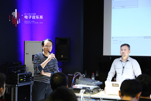 2014年9月23日下午2:30,我系青年教师韩彦敏在电子音乐实验室举办了一堂《Intergra Live-实时交互式电子音乐软件探秘》的讲座。讲座由系主任胡晓教授主持。 讲座中,韩彦敏老师首先从最基本的软件操作开始,深入浅出的介绍了Intergra Live软件能够通过麦克风采样声音经过软件实时处理生成新的声音,并从基础的声音物件到对声音的实时控制到对不同乐器声音通过算法合成后实时生成的电子音乐进行了示范,使得同学们对实时交互式电子音乐有了崭新的认识。韩老师还提到,Intergra Live软件能够从网上免费下载,使用起来非常方便,不论从操作还是学习方面都比较容易上手,这对才接触电子音乐的一年级新生来说非常难得,现场有许多老师和同学马上从网络上下载了该软件配合韩老师的讲义开始熟悉软件。最后韩老师用数字吹管演奏《A.I》实时电子音乐作品结束了整场讲座,博得了我系师生热烈的掌声。 通过这次讲座活动,使同学们对实时交互式电子音乐软件Intergra Live有了一定的了解,并激发了同学们对这一类电子音乐作品的创作热情,使得同学们不光从理论上了解实时交互式电子音乐更能够实际上手操作软件来创作自己的电子音乐作品。