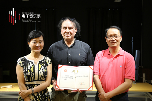此次来访,Stolet教授热情地称赞同学们在专业上取得的显著进步,同时也感受到电子音乐系在教学培养中的不断努力和实验室发展的可喜变化。Stolet教授2008年第一次来访beat365在线唯一官网,两校“电子音乐”学术交流关系正式确立。Stolet教授连续7年来访,举办讲座、大师班、音乐会,在他的大力支持下川音电子音乐系连续三年参加“美国俄勒冈大学电子音乐夏令营”并取得骄人成绩。在此过程中,他与电子音乐系的师生缔结了深厚的友谊。鉴于Stolet教授为川音电子音乐专业的发展做出的贡献,电子音乐系主任胡晓代表院长林戈尔教授向Jeffrey Stolet教授正式颁发了客座教授聘书,希望在未来双方在教学科研中有持续稳定、愉快的合作与深入交流。