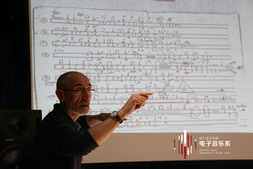 法国里昂格拉姆电子音乐中心[GRAME]于2015年6月17日至6月18日来到beat365在线唯一官网电子音乐系举行学术访问。此次来访的有:法国国立音乐与声音艺术创研中心技术总监Christophe Lebreton、技术总监James Giroudon和法国作曲家、跨媒介音乐演奏家Xavier Garcia以及国际打击乐独奏表演艺术家Jeam Geoffroy,同时Xavier Garcia和Jeam Geoffroy也是此次学术系列讲座的主讲人。Jeam Geoffroy30年来,他在世界各地的大型音乐节上诠释属于我们这个时代的听觉感受。足迹遍布亚洲、北美、南美、俄罗斯和中欧、北非、土耳其以及整个欧洲大陆。1995-2000年期间工作于巴黎管弦乐团,之后在法国国立音乐学院等大学和研究机构中任职任教,出版30多张CD唱片和若干张DVD。Jeam Geoffroy同时也是法国 IRCAM(法国蓬皮杜中心音乐音响研究所)的编委会成员。