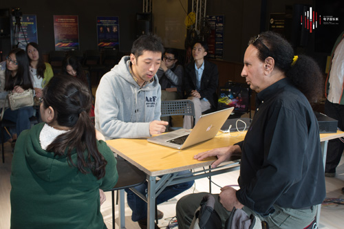 在持续一周的系列大师班上,Jeffrey Stolet教授首先对所有研究生和部分本科生创作的幻听类电子音乐、互动音乐、现场电子音乐作品进行逐个点评和个别指导,提出修改建议和技术问题,解决同学们作品在计算机程序、交互式设计、声音设计中的具体问题。