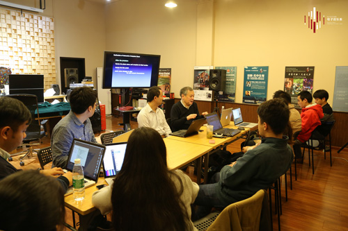 根据提前做好的教学准备和计划,在两周的教学过程中,莱孝之教授按照小组课加个别课,随堂作业加课后练习的模式对师生进行教学指导。根据学生专业基础和创作需求的不同,莱教授把学生分为不同的组别进行分别教学,避免了由于学生程度不统一所造成的教学质量降低,延缓教学进度的问题。在课堂教学中,莱教授根据自己多年的创作实践经验给学生教授电子音乐创作方法和电子音乐软件设计技术,从宏观到微观,从专业到基础,在不同的层面上对学生进行循循善诱的教学。每讲完一个知识点,莱教授就会指导学生当场进行实践和练习,提高学生实际动手能力,并且及时解决学生在学习和设计中的问题,提高教学效果。为强化学生对各知识点的学习,莱教授还在每次授课完成之后为学生布置不同程度的课后作业,要求学生在指定时间内完成,并在个别课和改题课中进行检查,严格要求学生。通过这样的教学模式,有效避免了部分学生课后疏于练习所造成的遗忘和慵懒问题,极大的提高了学生的学习积极性和学习主动性,有效提高了教学质量和教学效果。