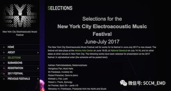 2017年纽约城市电子音乐节,将作为著名的纽约爱乐乐团双年展的一部分于2017年6月5日至7日在美国国家Sawdust音乐厅正式启动,6月13-25日,7月14-16日分两个时段,分别在Abrons艺术中心和国家Sawdust音乐厅举行多场电子音乐作品音乐会。