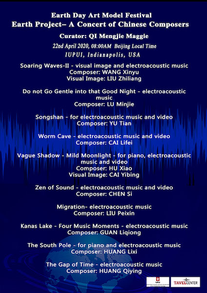 2020年4月22日是第五十一个“世界地球日”,保护地球是人类社会发展中永恒话题,也是人类命运共同体的发展目标。由Telematic Collective创始人、新媒体艺术家、美国印第安纳-普渡-印第安纳波利斯大学(IUPUI)Scott Deal教授发起,Tavel艺术技术研究中心资助,联合中国、加拿大、新西兰、澳大利亚、英国、比利时、法国、意大利等国家和地区的艺术院校和艺术家,将在2020年4月22日举办全球异地实时24小时马拉松音乐会。