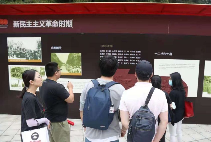 成都战役是第二次国共内战后期的一次战役,发生于1949年12月,通过此次战役,刘伯承、邓小平率领中国人民解放军第二野战军在成都平原歼灭胡宗南所率领的国军30余万人,进占成都。成都战役纪念馆,被列为四川省烈士纪念建筑物重点保护单位,园区分为烈士墓区、成都战役纪念碑、成都战役纪念馆、主题浮雕4个部分,展示有关成都战役的党史、军史、烈士自传以及其他文献。党员们沿着主题浮雕向山上走,来到成都战役烈士纪念碑暨烈士陵园,向革命烈士默哀并敬献鲜花,深切缅怀革命先烈。