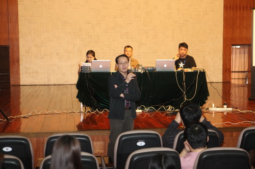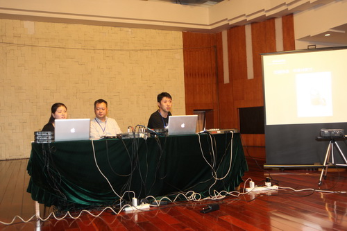 2012年5月24日下午,电子音乐系白小墨、陆敏捷、韩彦敏老师开展了“跨媒介电子音乐研讨会”的第一场讲座“跨媒介声音艺术作品的设计”,由姚琦老师担任学术主持。参加研讨会的代表与电子音乐系的全体师生参加了此次讲座。 陆敏捷老师介绍了新媒体艺术的发展概况以及四声道电子音乐作品《守望图瓦》的创作过程;白小墨老师介绍了新媒体艺术小组创作“beat365在线唯一官网陈列馆交互影像/声音走廊”装置艺术作品,团队合作的方式,演示了基于Kyma和Kinect创作的跨媒介电子音乐作品《没有声音的房间》,参加讲座的同学亲身体验了互动艺术的魅力;韩彦敏老师结合作品《羌笛物语》讲解了自己创作电子声学音乐作品的理念和方法。 在讲座的下半场,三位老师结合赴美国北德克萨斯大学音乐学院举办电子音乐会的经历,分析了在异地举办跨媒体电子音乐会、开展学术活动应注意的技术问题,总结经验。
